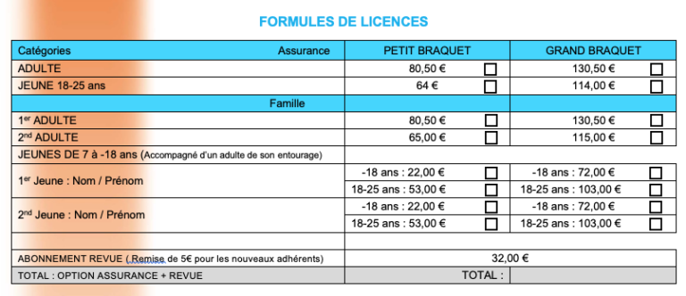 Offre réservée aux personnes n’ayant jamais eu de licence à la Fédération ou à tout licencié n’ayant pas renouvelé sa licence depuis plus de 3 ans.